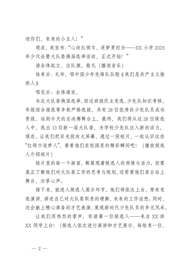 心向红领巾,逐梦勇担当——XX小学2025年少代会暨大队委换届选举活动主持稿admin1个月前发布关注私信0356 ——预览已结束,还剩3页未读——开通会员后可免费下载高清完整文档 心向红领巾,逐梦勇担当——XX小学2025年少代会暨大队委换届选举活动主持稿此内容为付费资源,请付费后查看¥9.9黄金会员免费钻石会员免费暂时无法购买,请与站长联系您当前未登录!建议登陆后购买,可保存购买订单格式docx页数5 页大小16.88 KB付费资源© 版权声明文章版权归作者所有,未经允许请勿转载。THE END发言稿 喜欢就支持一下吧点赞6 分享QQ空间微博QQ好友海报分享复制链接收藏