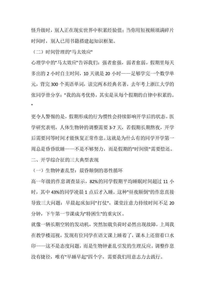 假期收心会校长讲话:破解3天收心定律,告别拖延症的五大陷阱admin1个月前发布关注私信03912 ——预览已结束,还剩6页未读——开通会员后可免费下载高清完整文档 假期收心会校长讲话:破解3天收心定律,告别拖延症的五大陷阱此内容为付费资源,请付费后查看¥9.9黄金会员免费钻石会员免费暂时无法购买,请与站长联系您当前未登录!建议登陆后购买,可保存购买订单格式docx页数8 页大小18.19 KB付费资源© 版权声明文章版权归作者所有,未经允许请勿转载。THE END发言稿 喜欢就支持一下吧点赞12 分享QQ空间微博QQ好友海报分享复制链接收藏