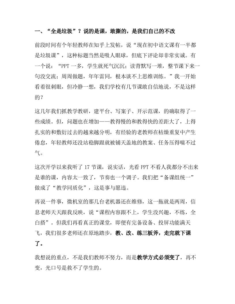 教学副校长在全体教师大会上讲话:全是垃圾?我们该和低效课堂彻底说再见了!admin1个月前发布关注私信04815 ——预览已结束,还剩4页未读——开通会员后可免费下载高清完整文档 教学副校长在全体教师大会上讲话:全是垃圾?我们该和低效课堂彻底说再见了!此内容为付费资源,请付费后查看¥9.9黄金会员免费钻石会员免费暂时无法购买,请与站长联系您当前未登录!建议登陆后购买,可保存购买订单格式docx页数6 页大小20.03 KB付费资源© 版权声明文章版权归作者所有,未经允许请勿转载。THE END发言稿 喜欢就支持一下吧点赞15 分享QQ空间微博QQ好友海报分享复制链接收藏