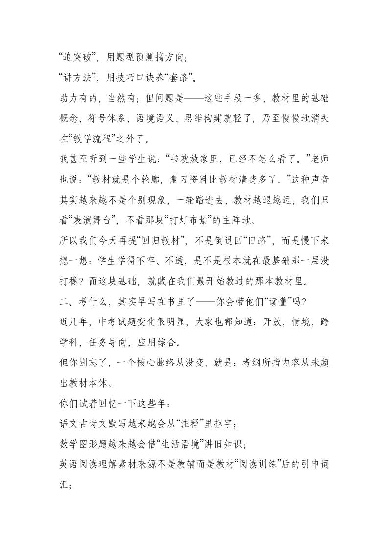 教学副校长在初三毕业班教师会上讲话:强化教材中心地位,精准靶向教学提分率admin1个月前发布关注私信03013 ——预览已结束,还剩4页未读——开通会员后可免费下载高清完整文档 教学副校长在初三毕业班教师会上讲话:强化教材中心地位,精准靶向教学提分率此内容为付费资源,请付费后查看¥9.9黄金会员免费钻石会员免费暂时无法购买,请与站长联系您当前未登录!建议登陆后购买,可保存购买订单格式docx页数6 页大小16.19 KB付费资源© 版权声明文章版权归作者所有,未经允许请勿转载。THE END发言稿 喜欢就支持一下吧点赞13 分享QQ空间微博QQ好友海报分享复制链接收藏