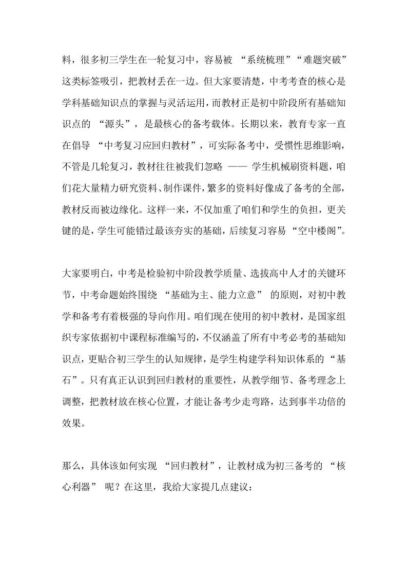 教学副校长在初三毕业班教师会上讲话:抓实“回归教材”,提升初三中考备考实效admin1个月前发布关注私信0338 ——预览已结束,还剩4页未读——开通会员后可免费下载高清完整文档 教学副校长在初三毕业班教师会上讲话:抓实“回归教材”,提升初三中考备考实效此内容为付费资源,请付费后查看¥9.9黄金会员免费钻石会员免费暂时无法购买,请与站长联系您当前未登录!建议登陆后购买,可保存购买订单格式docx页数6 页大小14.60 KB付费资源© 版权声明文章版权归作者所有,未经允许请勿转载。THE END发言稿 喜欢就支持一下吧点赞8 分享QQ空间微博QQ好友海报分享复制链接收藏