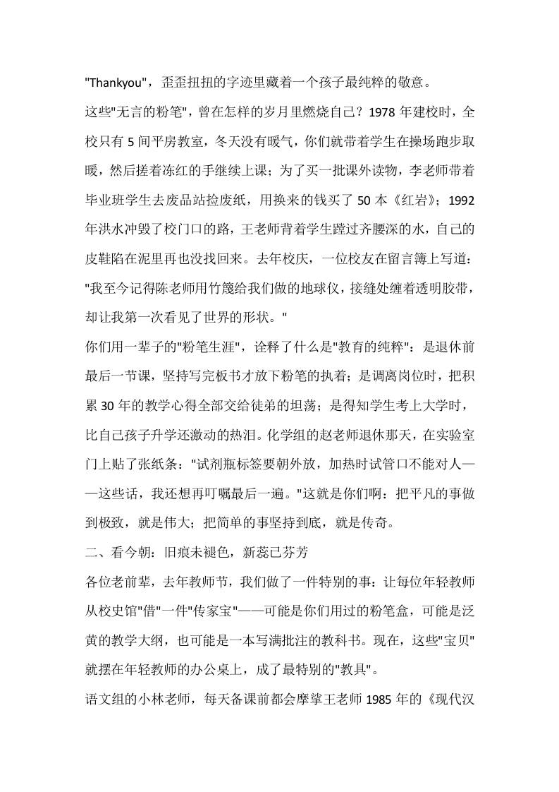 退休教师座谈会,校长致辞:粉笔无言写春秋,桃李有痕映初心admin1个月前发布关注私信04311 ——预览已结束,还剩4页未读——开通会员后可免费下载高清完整文档 退休教师座谈会,校长致辞:粉笔无言写春秋,桃李有痕映初心此内容为付费资源,请付费后查看¥9.9黄金会员免费钻石会员免费暂时无法购买,请与站长联系您当前未登录!建议登陆后购买,可保存购买订单格式docx页数6 页大小16.62 KB付费资源© 版权声明文章版权归作者所有,未经允许请勿转载。THE END管理相关 喜欢就支持一下吧点赞11 分享QQ空间微博QQ好友海报分享复制链接收藏
