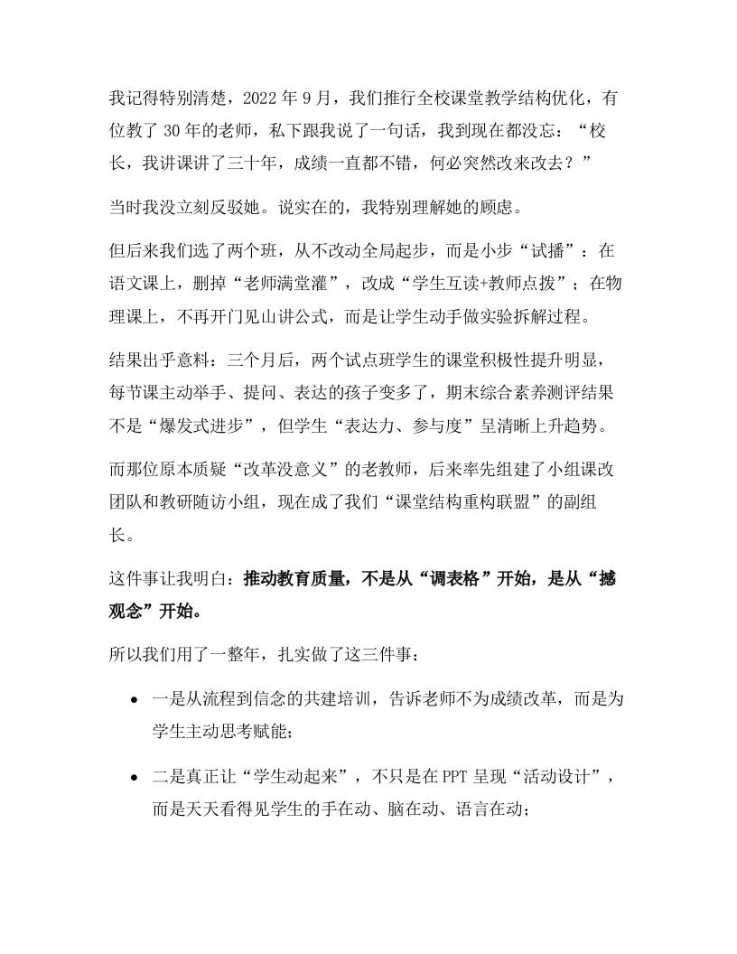校长在教育教学质量提升经验交流会上的发言:从一节课的变化,看教育质量的成长!admin1个月前发布关注私信0409 ——预览已结束,还剩4页未读——开通会员后可免费下载高清完整文档 校长在教育教学质量提升经验交流会上的发言:从一节课的变化,看教育质量的成长!此内容为付费资源,请付费后查看¥9.9黄金会员免费钻石会员免费暂时无法购买,请与站长联系您当前未登录!建议登陆后购买,可保存购买订单格式docx页数6 页大小20.46 KB付费资源© 版权声明文章版权归作者所有,未经允许请勿转载。THE END发言稿 喜欢就支持一下吧点赞9 分享QQ空间微博QQ好友海报分享复制链接收藏