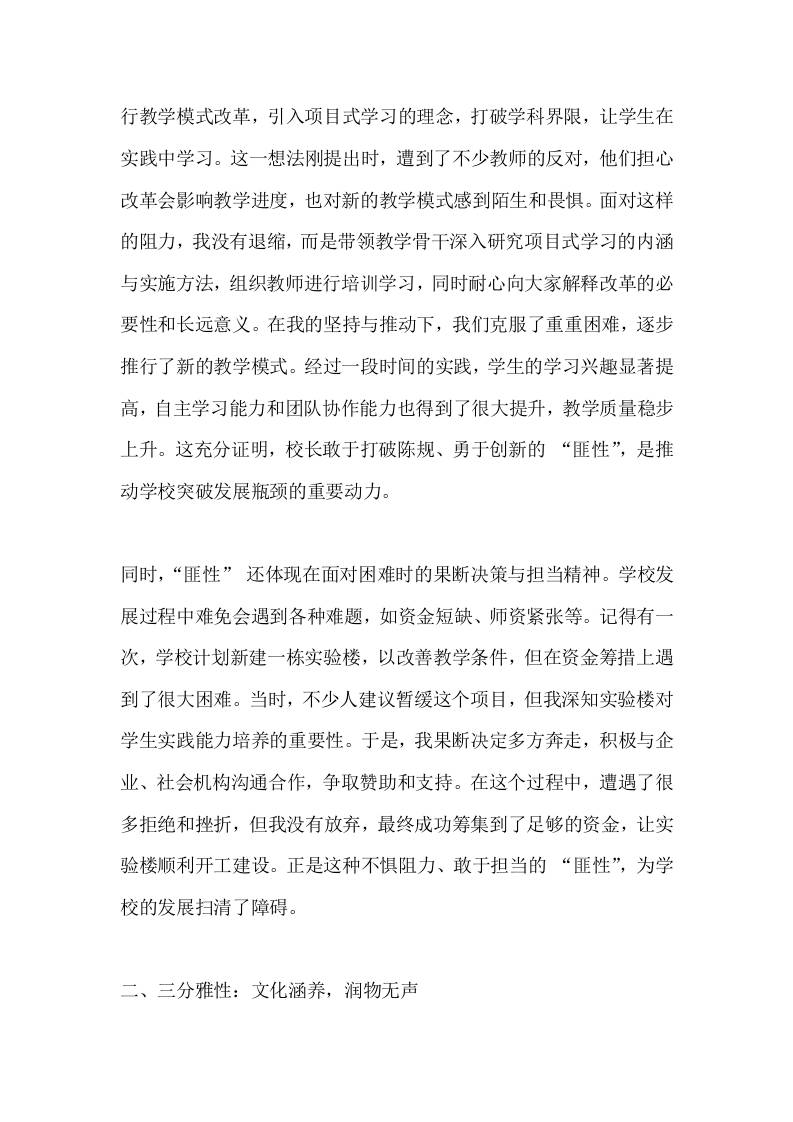 学校管理经验交流会,校长发言:匪性、雅性、刚性、柔性admin1个月前发布关注私信0596 ——预览已结束,还剩4页未读——开通会员后可免费下载高清完整文档 学校管理经验交流会,校长发言:匪性、雅性、刚性、柔性此内容为付费资源,请付费后查看¥9.9黄金会员免费钻石会员免费暂时无法购买,请与站长联系您当前未登录!建议登陆后购买,可保存购买订单格式docx页数6 页大小14.60 KB付费资源© 版权声明文章版权归作者所有,未经允许请勿转载。THE END发言稿 喜欢就支持一下吧点赞6 分享QQ空间微博QQ好友海报分享复制链接收藏