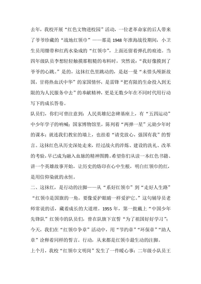 2025年中国少年先锋队建队日,校长国旗下讲话:红领巾为何这样红?——从星火到朝阳的信仰传承admin1个月前发布关注私信0225 ——预览已结束,还剩4页未读——开通会员后可免费下载高清完整文档 2025年中国少年先锋队建队日,校长国旗下讲话:红领巾为何这样红?——从星火到朝阳的信仰传承此内容为付费资源,请付费后查看¥9.9黄金会员免费钻石会员免费暂时无法购买,请与站长联系您当前未登录!建议登陆后购买,可保存购买订单格式docx页数6 页大小15.56 KB付费资源© 版权声明文章版权归作者所有,未经允许请勿转载。THE END国旗下讲话 喜欢就支持一下吧点赞5 分享QQ空间微博QQ好友海报分享复制链接收藏