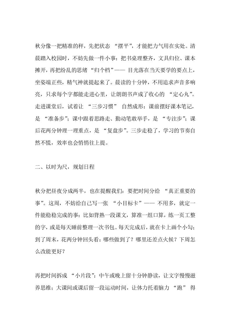 秋分节气,校长在国旗下讲话:秋分启“有度”,学行筑新章admin1个月前发布关注私信05015 ——预览已结束,还剩2页未读——开通会员后可免费下载高清完整文档 秋分节气,校长在国旗下讲话:秋分启“有度”,学行筑新章此内容为付费资源,请付费后查看¥9.9黄金会员免费钻石会员免费暂时无法购买,请与站长联系您当前未登录!建议登陆后购买,可保存购买订单格式docx页数4 页大小13.75 KB付费资源© 版权声明文章版权归作者所有,未经允许请勿转载。THE END国旗下讲话 喜欢就支持一下吧点赞15 分享QQ空间微博QQ好友海报分享复制链接收藏