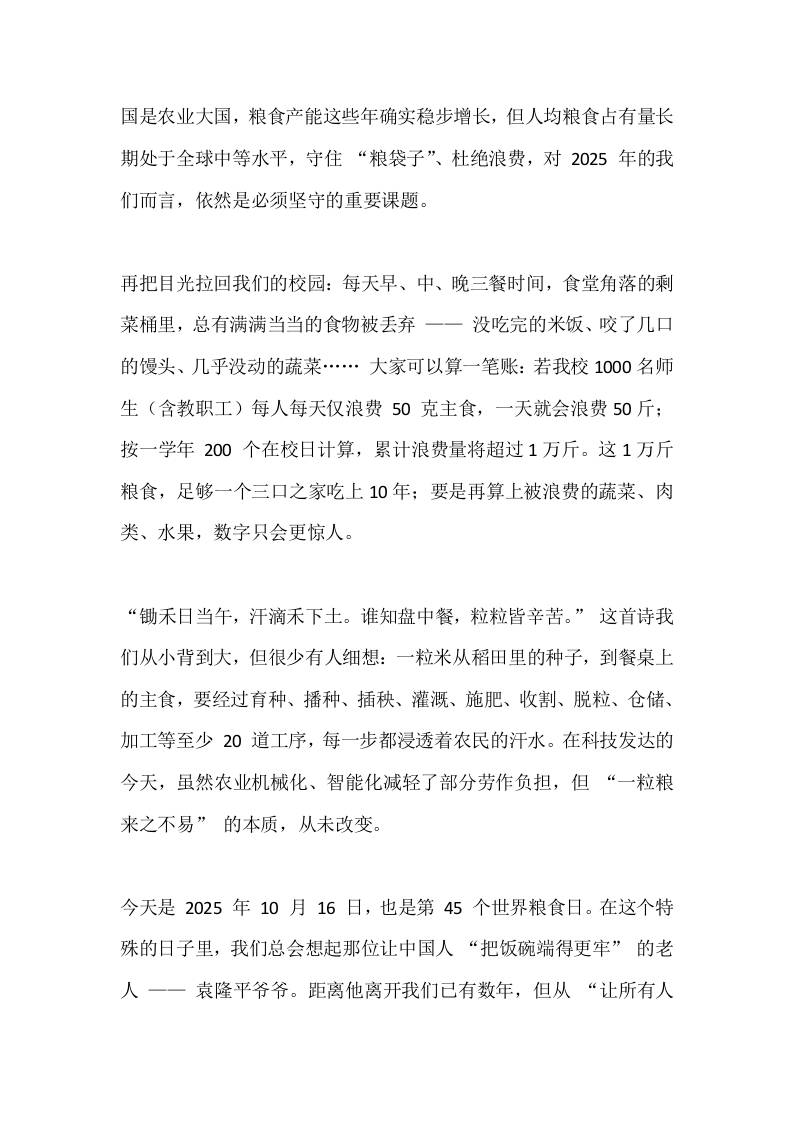 2025世界粮食日,校长在国旗下讲话:珍惜每一粒粮,传承伟人志admin33天前发布关注私信02911 ——预览已结束,还剩3页未读——开通会员后可免费下载高清完整文档 2025世界粮食日,校长在国旗下讲话:珍惜每一粒粮,传承伟人志此内容为付费资源,请付费后查看¥9.9黄金会员免费钻石会员免费暂时无法购买,请与站长联系您当前未登录!建议登陆后购买,可保存购买订单格式docx页数5 页大小14.32 KB付费资源© 版权声明文章版权归作者所有,未经允许请勿转载。THE END国旗下讲话 喜欢就支持一下吧点赞11 分享QQ空间微博QQ好友海报分享复制链接收藏