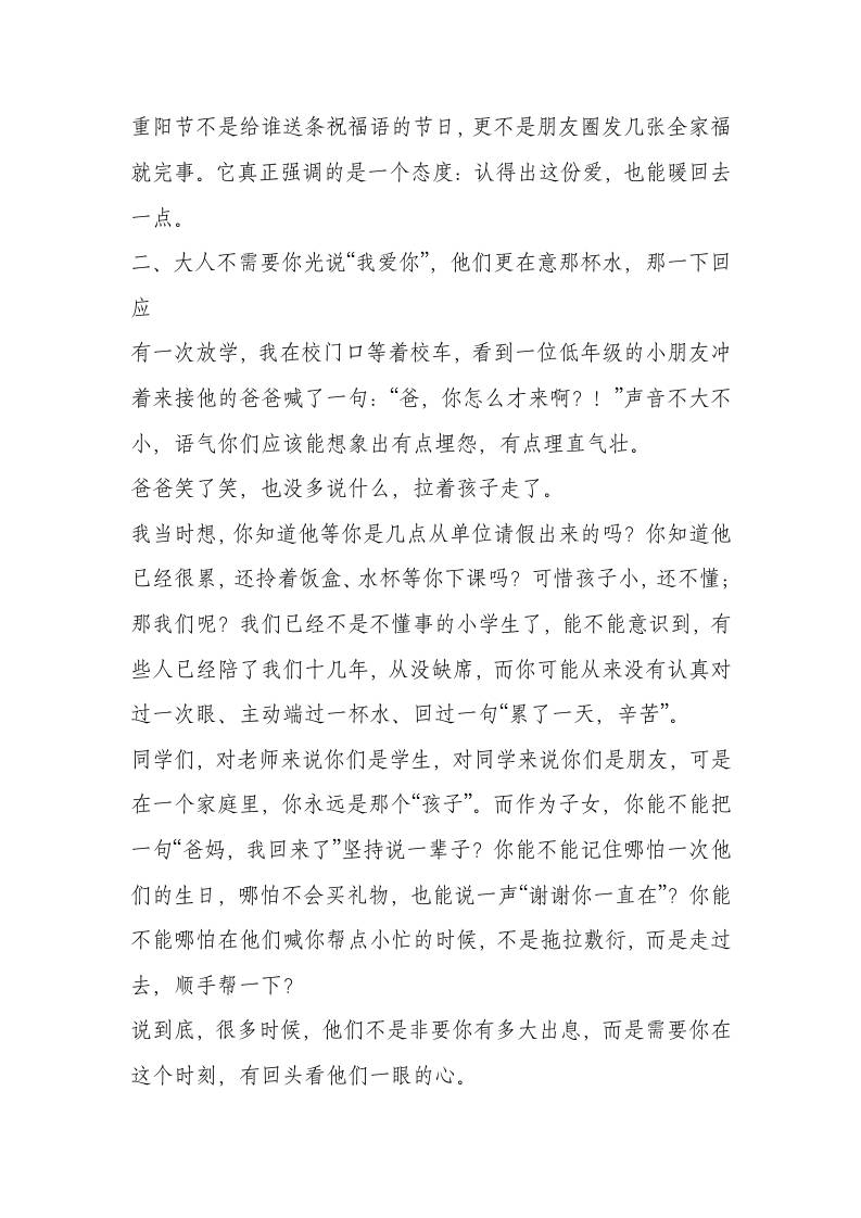 重阳节·敬老情|校长在国旗下讲话:孝亲,是根,是爱,更是我们一生的必修课admin33天前发布关注私信0476 ——预览已结束,还剩4页未读——开通会员后可免费下载高清完整文档 重阳节·敬老情|校长在国旗下讲话:孝亲,是根,是爱,更是我们一生的必修课此内容为付费资源,请付费后查看¥9.9黄金会员免费钻石会员免费暂时无法购买,请与站长联系您当前未登录!建议登陆后购买,可保存购买订单格式docx页数6 页大小15.57 KB付费资源© 版权声明文章版权归作者所有,未经允许请勿转载。THE END国旗下讲话 喜欢就支持一下吧点赞6 分享QQ空间微博QQ好友海报分享复制链接收藏
