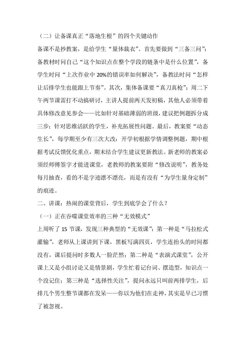 全体教师大会上,副校长讲话:谁在透支课堂质量?——教学常规的七重反思与重塑admin31天前发布关注私信0288 ——预览已结束,还剩7页未读——开通会员后可免费下载高清完整文档 全体教师大会上,副校长讲话:谁在透支课堂质量?——教学常规的七重反思与重塑此内容为付费资源,请付费后查看¥9.9黄金会员免费钻石会员免费暂时无法购买,请与站长联系您当前未登录!建议登陆后购买,可保存购买订单格式docx页数9 页大小18.41 KB付费资源© 版权声明文章版权归作者所有,未经允许请勿转载。THE END发言稿 喜欢就支持一下吧点赞8 分享QQ空间微博QQ好友海报分享复制链接收藏