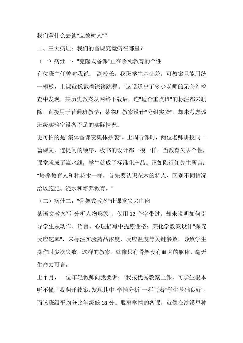 教师例会上,教学副校长讲话:从废纸到范本——一堂关于备课的觉醒课admin33天前发布关注私信04712 ——预览已结束,还剩4页未读——开通会员后可免费下载高清完整文档 教师例会上,教学副校长讲话:从废纸到范本——一堂关于备课的觉醒课此内容为付费资源,请付费后查看¥9.9黄金会员免费钻石会员免费暂时无法购买,请与站长联系您当前未登录!建议登陆后购买,可保存购买订单格式docx页数6 页大小15.95 KB付费资源© 版权声明文章版权归作者所有,未经允许请勿转载。THE END发言稿 喜欢就支持一下吧点赞12 分享QQ空间微博QQ好友海报分享复制链接收藏