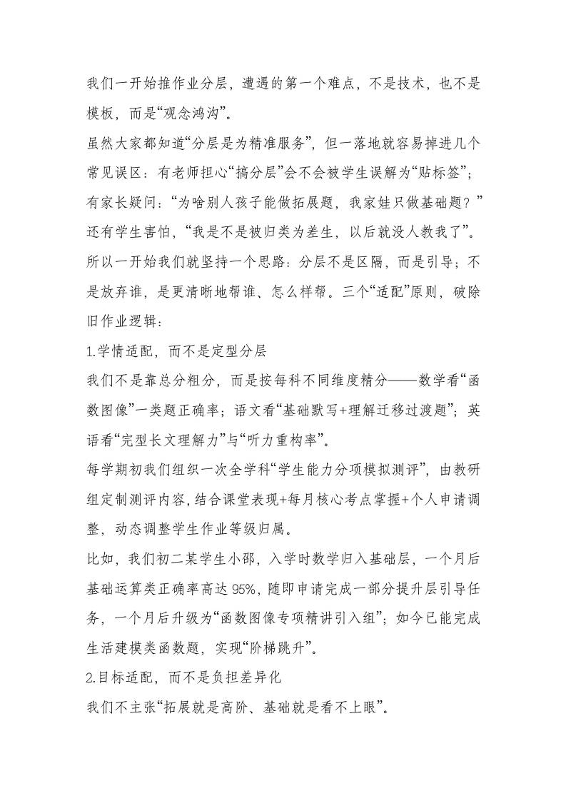初中作业分层管理亮点工作,校长汇报发言:摆脱“刷题内卷”,走向“分层提质”admin4个月前发布关注私信0535 ——预览已结束,还剩4页未读——开通会员后可免费下载高清完整文档 初中作业分层管理亮点工作,校长汇报发言:摆脱“刷题内卷”,走向“分层提质”此内容为付费资源,请付费后查看¥9.9黄金会员免费钻石会员免费暂时无法购买,请与站长联系您当前未登录!建议登陆后购买,可保存购买订单格式docx页数6 页大小15.90 KB付费资源© 版权声明文章版权归作者所有,未经允许请勿转载。THE END发言稿 喜欢就支持一下吧点赞5 分享QQ空间微博QQ好友海报分享复制链接收藏