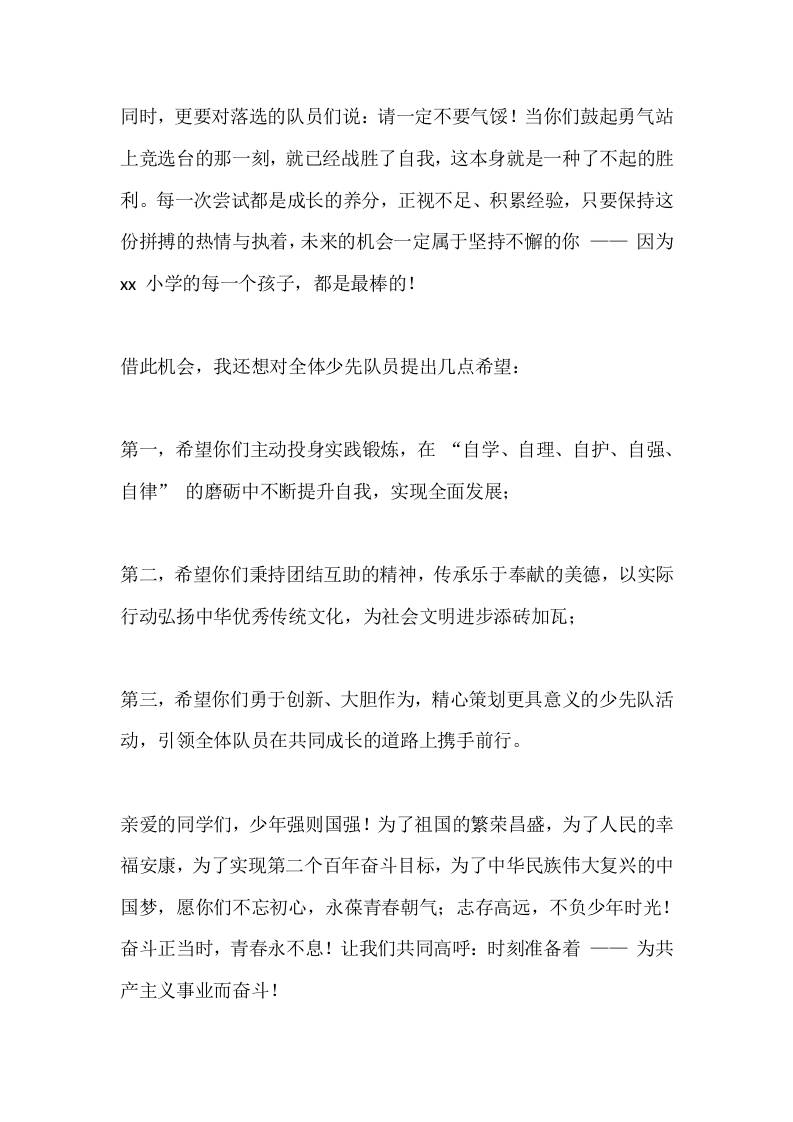 校长在少先队大队委竞选上的讲话:以勇气赴竞选,以初心向未来admin4个月前发布关注私信0306 ——预览已结束,还剩1页未读——开通会员后可免费下载高清完整文档 校长在少先队大队委竞选上的讲话:以勇气赴竞选,以初心向未来此内容为付费资源,请付费后查看¥9.9黄金会员免费钻石会员免费暂时无法购买,请与站长联系您当前未登录!建议登陆后购买,可保存购买订单格式docx页数3 页大小11.82 KB付费资源© 版权声明文章版权归作者所有,未经允许请勿转载。THE END发言稿 喜欢就支持一下吧点赞6 分享QQ空间微博QQ好友海报分享复制链接收藏