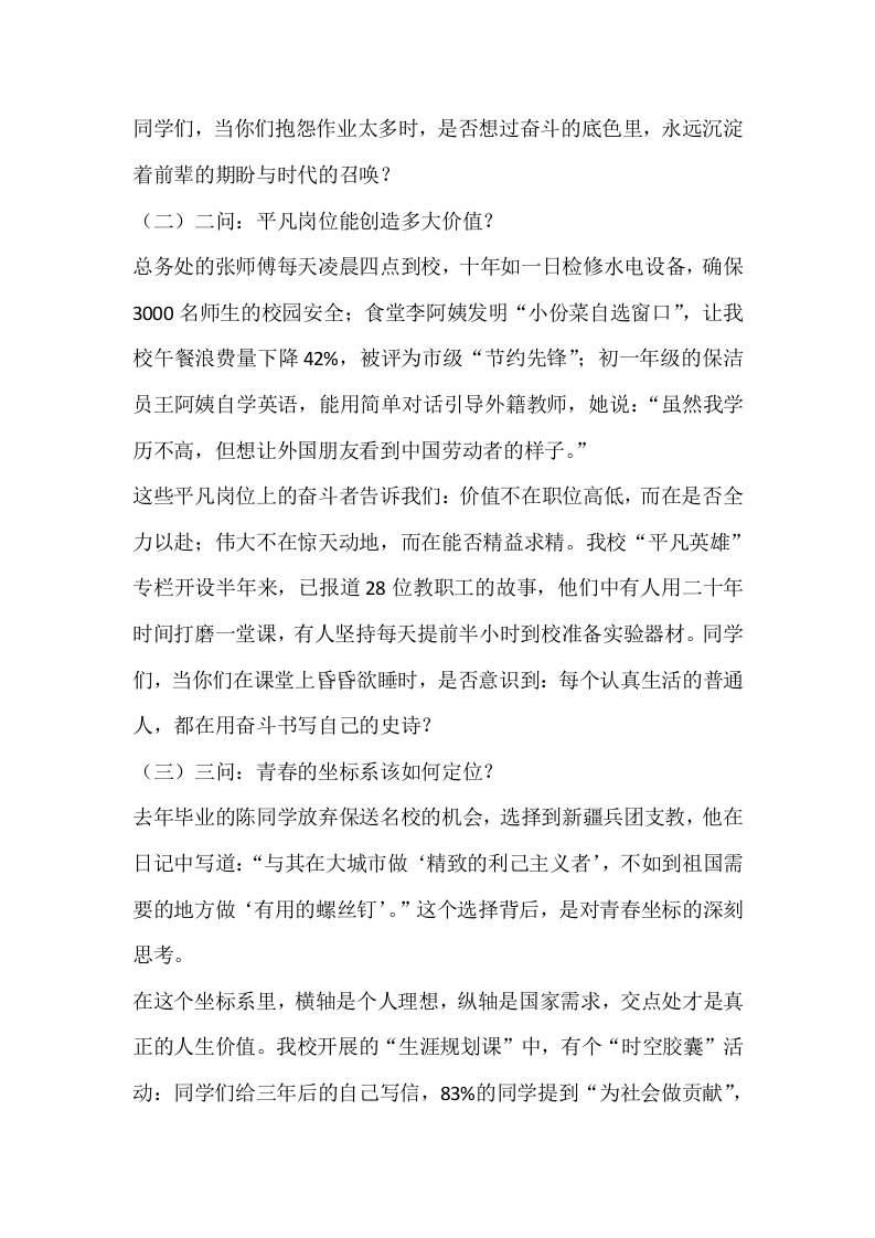校长在国旗下讲话:奋斗三问,学风四要admin18天前发布关注私信0267 ——预览已结束,还剩6页未读——开通会员后可免费下载高清完整文档 校长在国旗下讲话:奋斗三问,学风四要此内容为付费资源,请付费后查看¥9.9黄金会员免费钻石会员免费暂时无法购买,请与站长联系您当前未登录!建议登陆后购买,可保存购买订单格式docx页数8 页大小17.69 KB付费资源© 版权声明文章版权归作者所有,未经允许请勿转载。THE END国旗下讲话 喜欢就支持一下吧点赞7 分享QQ空间微博QQ好友海报分享复制链接收藏
