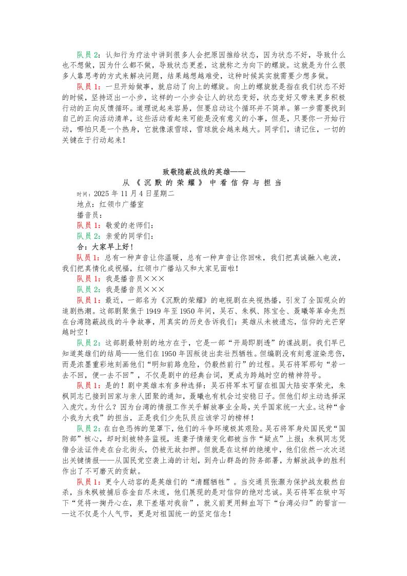 红领巾广播站2025年秋季学期第10周播稿admin16天前发布关注私信0389 ——预览已结束,还剩4页未读——开通会员后可免费下载高清完整文档 红领巾广播站2025年秋季学期第10周播稿此内容为付费资源,请付费后查看¥9.9黄金会员免费钻石会员免费暂时无法购买,请与站长联系您当前未登录!建议登陆后购买,可保存购买订单格式docx页数6 页大小25.83 KB付费资源© 版权声明文章版权归作者所有,未经允许请勿转载。THE END发言稿 喜欢就支持一下吧点赞9 分享QQ空间微博QQ好友海报分享复制链接收藏