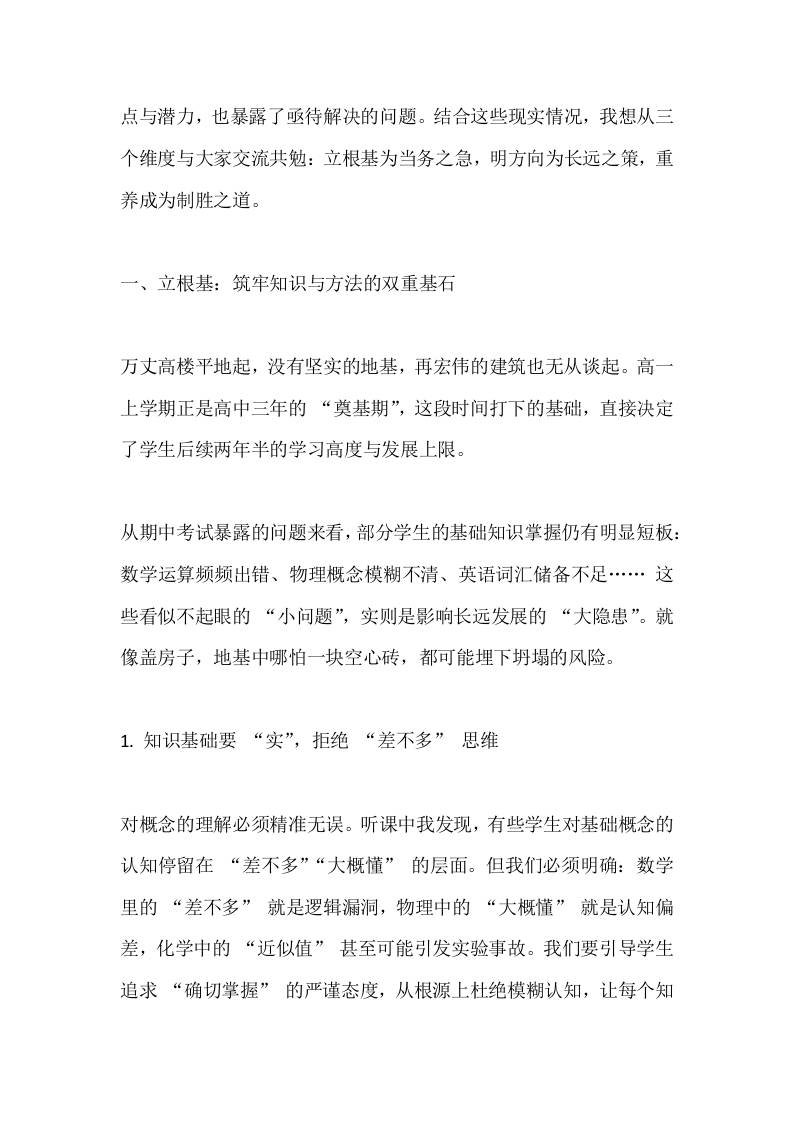 2025级高一期中成绩分析会上,校长讲话:“初中‘喂饭’是启蒙,高中‘自己吃’才是成长”admin9天前发布关注私信0426 ——预览已结束,还剩6页未读——开通会员后可免费下载高清完整文档 2025级高一期中成绩分析会上,校长讲话:“初中‘喂饭’是启蒙,高中‘自己吃’才是成长”此内容为付费资源,请付费后查看¥9.9黄金会员免费钻石会员免费暂时无法购买,请与站长联系您当前未登录!建议登陆后购买,可保存购买订单格式docx页数8 页大小16.41 KB付费资源© 版权声明文章版权归作者所有,未经允许请勿转载。THE END发言稿 喜欢就支持一下吧点赞6 分享QQ空间微博QQ好友海报分享复制链接收藏