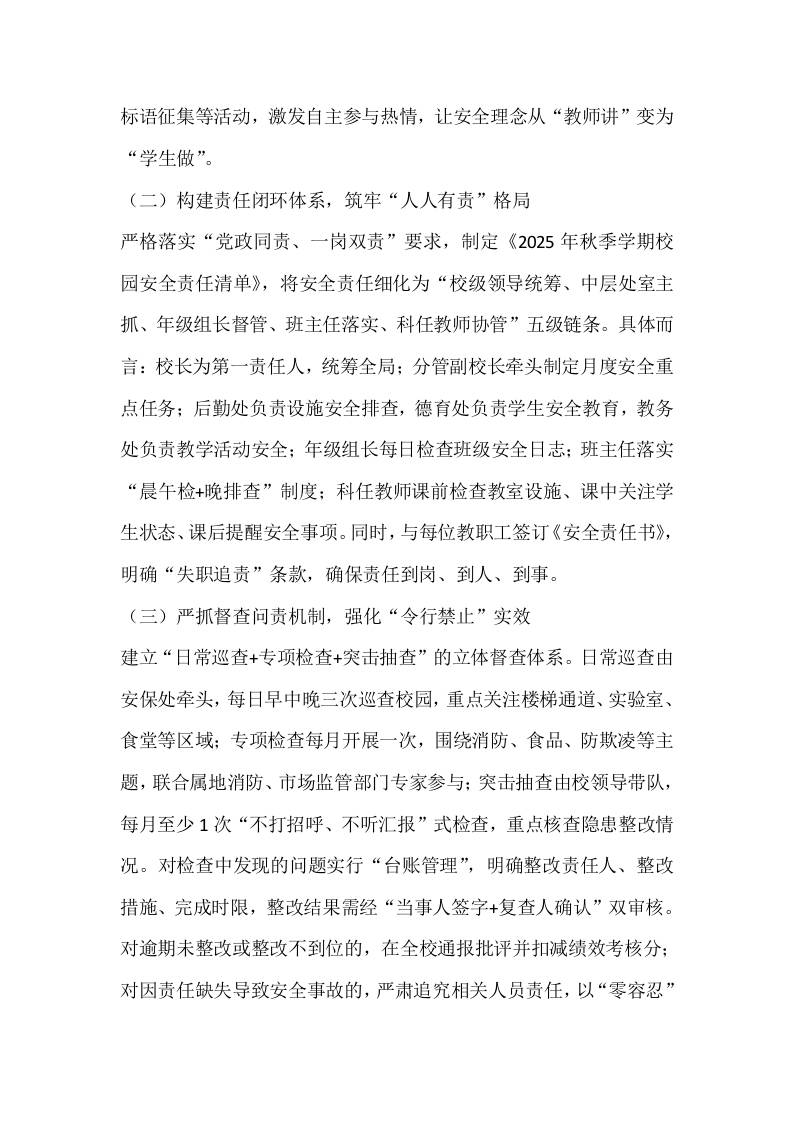 XX中小学校2025年秋季学期学校安全工作计划:织密安全网络,共绘平安校园新图景admin昨天发布关注私信04412 ——预览已结束,还剩11页未读——开通会员后可免费下载高清完整文档 XX中小学校2025年秋季学期学校安全工作计划:织密安全网络,共绘平安校园新图景此内容为付费资源,请付费后查看¥9.9黄金会员免费钻石会员免费暂时无法购买,请与站长联系您当前未登录!建议登陆后购买,可保存购买订单格式docx页数13 页大小21.97 KB付费资源© 版权声明文章版权归作者所有,未经允许请勿转载。THE END工作计划 喜欢就支持一下吧点赞12 分享QQ空间微博QQ好友海报分享复制链接收藏
