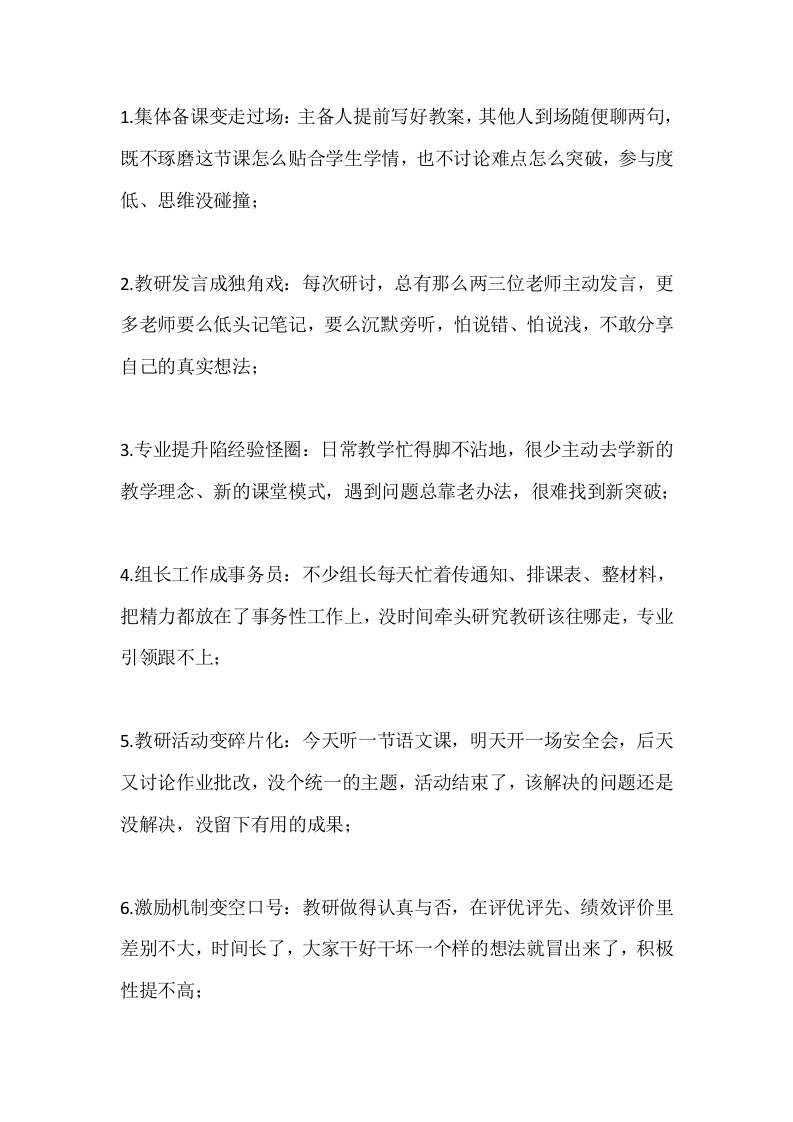 校长在全校教研工作会议上的讲话:让教研真正成为教学的助推器admin3个月前发布关注私信02110 ——预览已结束,还剩5页未读——开通会员后可免费下载高清完整文档 校长在全校教研工作会议上的讲话:让教研真正成为教学的助推器此内容为付费资源,请付费后查看¥9.9黄金会员免费钻石会员免费暂时无法购买,请与站长联系您当前未登录!建议登陆后购买,可保存购买订单格式docx页数7 页大小15.56 KB付费资源© 版权声明文章版权归作者所有,未经允许请勿转载。THE END发言稿 喜欢就支持一下吧点赞10 分享QQ空间微博QQ好友海报分享复制链接收藏