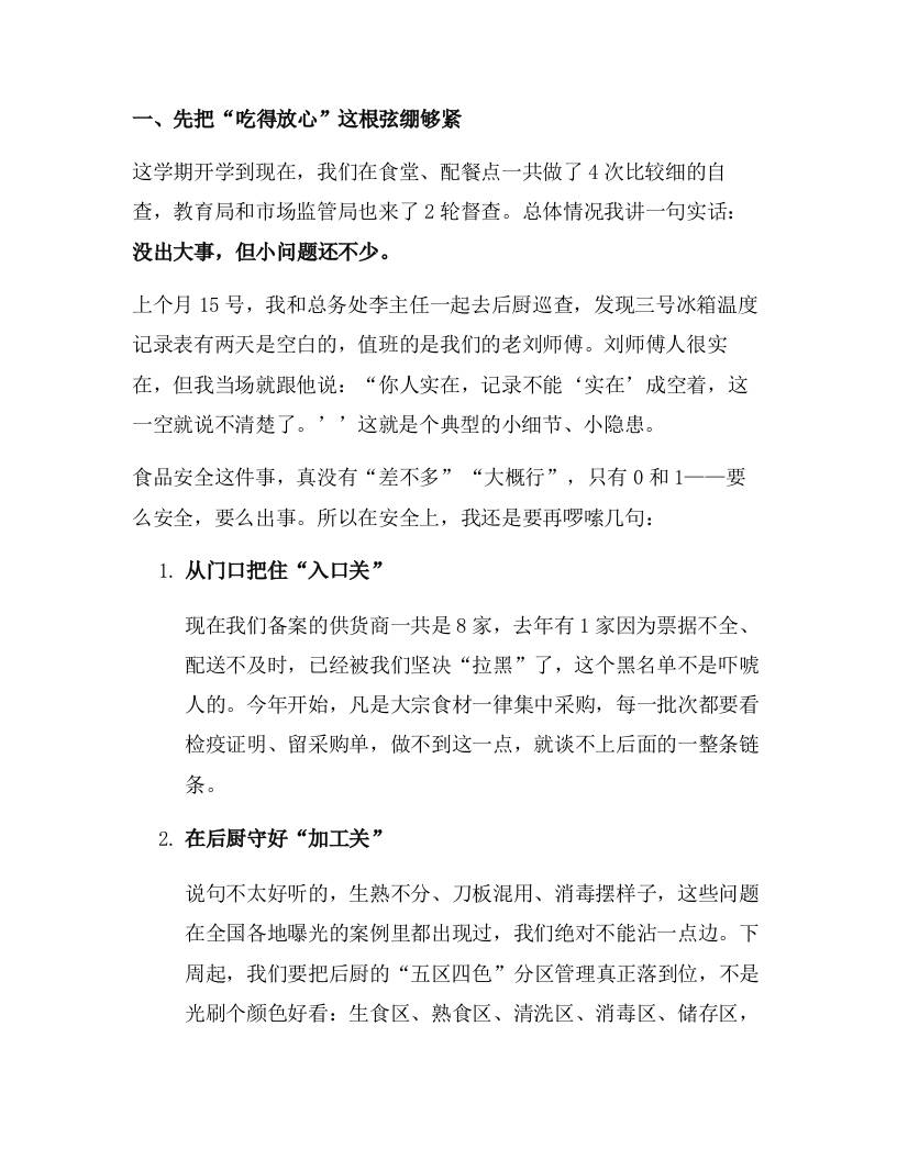 校长在校园餐工作调度会上讲话:在一日三餐里守住底线、做出温度!admin3个月前发布关注私信03010 ——预览已结束,还剩4页未读——开通会员后可免费下载高清完整文档 校长在校园餐工作调度会上讲话:在一日三餐里守住底线、做出温度!此内容为付费资源,请付费后查看¥9.9黄金会员免费钻石会员免费暂时无法购买,请与站长联系您当前未登录!建议登陆后购买,可保存购买订单格式docx页数6 页大小21.18 KB付费资源© 版权声明文章版权归作者所有,未经允许请勿转载。THE END发言稿 喜欢就支持一下吧点赞10 分享QQ空间微博QQ好友海报分享复制链接收藏