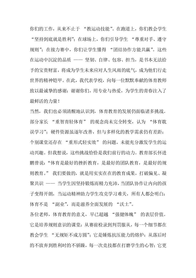 校长在体育教学工作会上讲话:把“体育课”上成学生一生的“必修课”admin3个月前发布关注私信0517 ——预览已结束,还剩2页未读——开通会员后可免费下载高清完整文档 校长在体育教学工作会上讲话:把“体育课”上成学生一生的“必修课”此内容为付费资源,请付费后查看¥9.9黄金会员免费钻石会员免费暂时无法购买,请与站长联系您当前未登录!建议登陆后购买,可保存购买订单格式docx页数4 页大小13.79 KB付费资源© 版权声明文章版权归作者所有,未经允许请勿转载。THE END发言稿 喜欢就支持一下吧点赞7 分享QQ空间微博QQ好友海报分享复制链接收藏