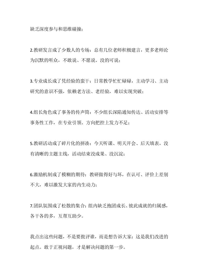 校长在教师会议上发言:如何让教研组活起来admin2个月前发布关注私信0415 ——预览已结束,还剩4页未读——开通会员后可免费下载高清完整文档 校长在教师会议上发言:如何让教研组活起来此内容为付费资源,请付费后查看¥9.9黄金会员免费钻石会员免费暂时无法购买,请与站长联系您当前未登录!建议登陆后购买,可保存购买订单格式docx页数6 页大小14.87 KB付费资源© 版权声明文章版权归作者所有,未经允许请勿转载。THE END发言稿 喜欢就支持一下吧点赞5 分享QQ空间微博QQ好友海报分享复制链接收藏