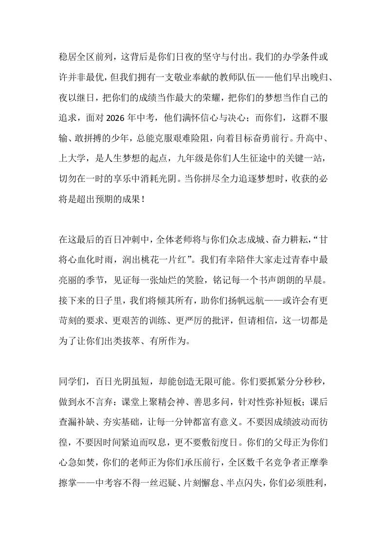 2026年中考百日冲刺讲话:百日砺剑战中考,青春无悔铸辉煌admin1个月前发布关注私信0366 ——预览已结束,还剩1页未读——开通会员后可免费下载高清完整文档 2026年中考百日冲刺讲话:百日砺剑战中考,青春无悔铸辉煌此内容为付费资源,请付费后查看¥9.9黄金会员免费钻石会员免费暂时无法购买,请与站长联系您当前未登录!建议登陆后购买,可保存购买订单格式docx页数3 页大小12.95 KB付费资源© 版权声明文章版权归作者所有,未经允许请勿转载。THE END发言稿 喜欢就支持一下吧点赞6 分享QQ空间微博QQ好友海报分享复制链接收藏