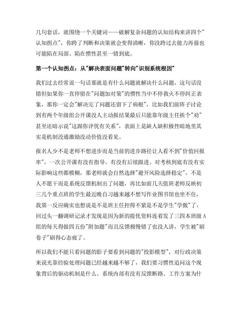 校长在行政班子会上讲话:别用惯性思维管复杂学校,这四个认知拐点,班子成员必须跨过!admin1个月前发布关注私信02415 ——预览已结束,还剩4页未读——开通会员后可免费下载高清完整文档 校长在行政班子会上讲话:别用惯性思维管复杂学校,这四个认知拐点,班子成员必须跨过!此内容为付费资源,请付费后查看¥9.9黄金会员免费钻石会员免费暂时无法购买,请与站长联系您当前未登录!建议登陆后购买,可保存购买订单格式docx页数6 页大小20.04 KB付费资源© 版权声明文章版权归作者所有,未经允许请勿转载。THE END发言稿 喜欢就支持一下吧点赞15 分享QQ空间微博QQ好友海报分享复制链接收藏