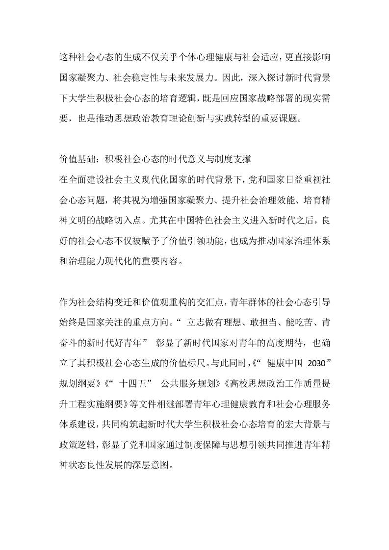 如何培养大学生积极社会心态培育的价值指向与实践路径admin前天发布关注私信04411 ——预览已结束,还剩3页未读——开通会员后可免费下载高清完整文档 如何培养大学生积极社会心态培育的价值指向与实践路径此内容为付费资源,请付费后查看¥9.9黄金会员免费钻石会员免费暂时无法购买,请与站长联系您当前未登录!建议登陆后购买,可保存购买订单格式docx页数5 页大小13.69 KB付费资源© 版权声明文章版权归作者所有,未经允许请勿转载。THE END管理相关 喜欢就支持一下吧点赞11 分享QQ空间微博QQ好友海报分享复制链接收藏