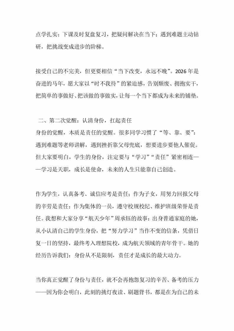 秋季学期末动员大会校长讲话:以三次觉醒赴期末之约admin昨天发布关注私信0279 ——预览已结束,还剩3页未读——开通会员后可免费下载高清完整文档 秋季学期末动员大会校长讲话:以三次觉醒赴期末之约此内容为付费资源,请付费后查看¥9.9黄金会员免费钻石会员免费暂时无法购买,请与站长联系您当前未登录!建议登陆后购买,可保存购买订单格式docx页数5 页大小14.10 KB付费资源© 版权声明文章版权归作者所有,未经允许请勿转载。THE END发言稿 喜欢就支持一下吧点赞9 分享QQ空间微博QQ好友海报分享复制链接收藏