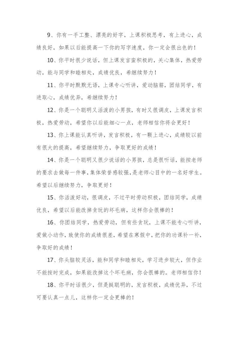 小学期末班主任评语汇集47篇admin昨天发布关注私信02214 ——预览已结束,还剩4页未读——开通会员后可免费下载高清完整文档 小学期末班主任评语汇集47篇此内容为付费资源,请付费后查看¥9.9黄金会员免费钻石会员免费暂时无法购买,请与站长联系您当前未登录!建议登陆后购买,可保存购买订单格式doc页数6 页大小30.50 KB付费资源© 版权声明文章版权归作者所有,未经允许请勿转载。THE END评语 喜欢就支持一下吧点赞14 分享QQ空间微博QQ好友海报分享复制链接收藏