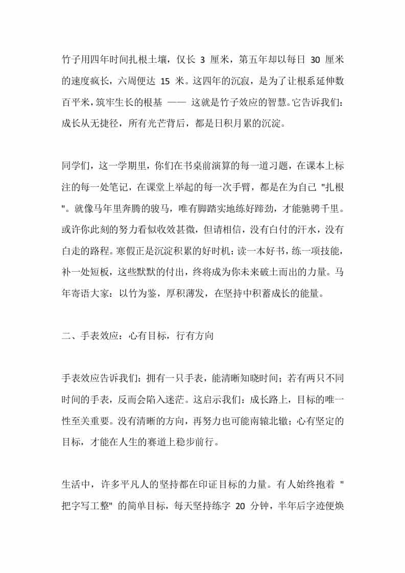 2026马年寒假散学典礼,校长精彩讲话,引用3个效应:竹子效应,手表效应,踢猫效应admin昨天发布关注私信0507 ——预览已结束,还剩2页未读——开通会员后可免费下载高清完整文档 2026马年寒假散学典礼,校长精彩讲话,引用3个效应:竹子效应,手表效应,踢猫效应此内容为付费资源,请付费后查看¥9.9黄金会员免费钻石会员免费暂时无法购买,请与站长联系您当前未登录!建议登陆后购买,可保存购买订单格式docx页数4 页大小13.64 KB付费资源© 版权声明文章版权归作者所有,未经允许请勿转载。THE END发言稿 喜欢就支持一下吧点赞7 分享QQ空间微博QQ好友海报分享复制链接收藏