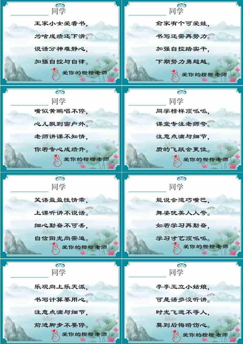 02【打油诗】72则创意期末评语-每页8张admin昨天发布关注私信0217 ——预览已结束,还剩7页未读——开通会员后可免费下载高清完整文档 02【打油诗】72则创意期末评语-每页8张此内容为付费资源,请付费后查看¥9.9黄金会员免费钻石会员免费暂时无法购买,请与站长联系您当前未登录!建议登陆后购买,可保存购买订单格式docx页数9 页大小3.52 MB付费资源© 版权声明文章版权归作者所有,未经允许请勿转载。THE END评语 喜欢就支持一下吧点赞7 分享QQ空间微博QQ好友海报分享复制链接收藏