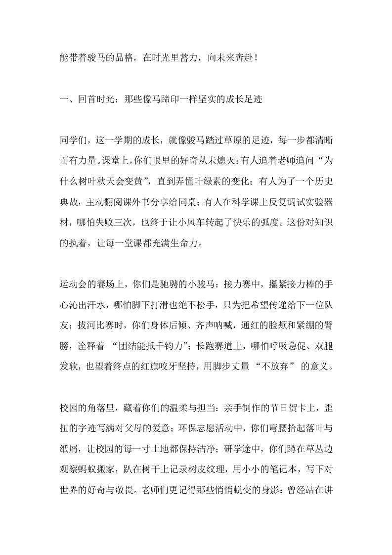 校长在2026马年散学典礼上精彩讲话:骏马踏冬启新程,少年逐光向未来admin昨天发布关注私信0435 ——预览已结束,还剩5页未读——开通会员后可免费下载高清完整文档 校长在2026马年散学典礼上精彩讲话:骏马踏冬启新程,少年逐光向未来此内容为付费资源,请付费后查看¥9.9黄金会员免费钻石会员免费暂时无法购买,请与站长联系您当前未登录!建议登陆后购买,可保存购买订单格式docx页数7 页大小16.06 KB付费资源© 版权声明文章版权归作者所有,未经允许请勿转载。THE END发言稿 喜欢就支持一下吧点赞5 分享QQ空间微博QQ好友海报分享复制链接收藏