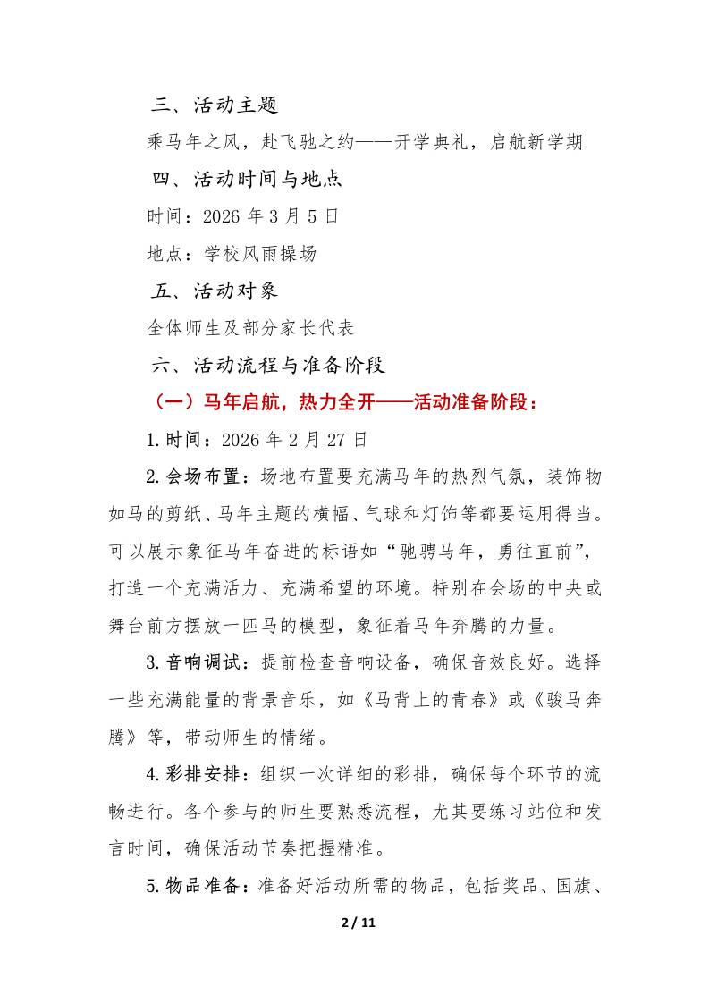 2026年春季开学典礼活动实施方案——乘“马年”之风,赴“飞驰”之约admin11小时前发布关注私信03315 ——预览已结束,还剩9页未读——开通会员后可免费下载高清完整文档 2026年春季开学典礼活动实施方案——乘“马年”之风,赴“飞驰”之约此内容为付费资源,请付费后查看¥9.9黄金会员免费钻石会员免费暂时无法购买,请与站长联系您当前未登录!建议登陆后购买,可保存购买订单格式docx页数11 页大小474.06 KB付费资源© 版权声明文章版权归作者所有,未经允许请勿转载。THE END管理相关 喜欢就支持一下吧点赞15 分享QQ空间微博QQ好友海报分享复制链接收藏