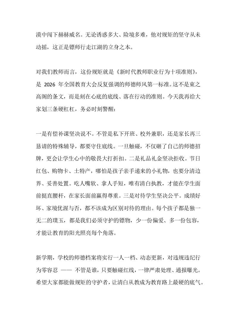 2026春季开学师德师风会议,校长引用电影《镖人》讲话:以镖师之守,铸师德之魂admin昨天发布关注私信0246 ——预览已结束,还剩4页未读——开通会员后可免费下载高清完整文档 2026春季开学师德师风会议,校长引用电影《镖人》讲话:以镖师之守,铸师德之魂此内容为付费资源,请付费后查看¥9.9黄金会员免费钻石会员免费暂时无法购买,请与站长联系您当前未登录!建议登陆后购买,可保存购买订单格式docx页数6 页大小15.56 KB付费资源© 版权声明文章版权归作者所有,未经允许请勿转载。THE END发言稿 喜欢就支持一下吧点赞6 分享QQ空间微博QQ好友海报分享复制链接收藏