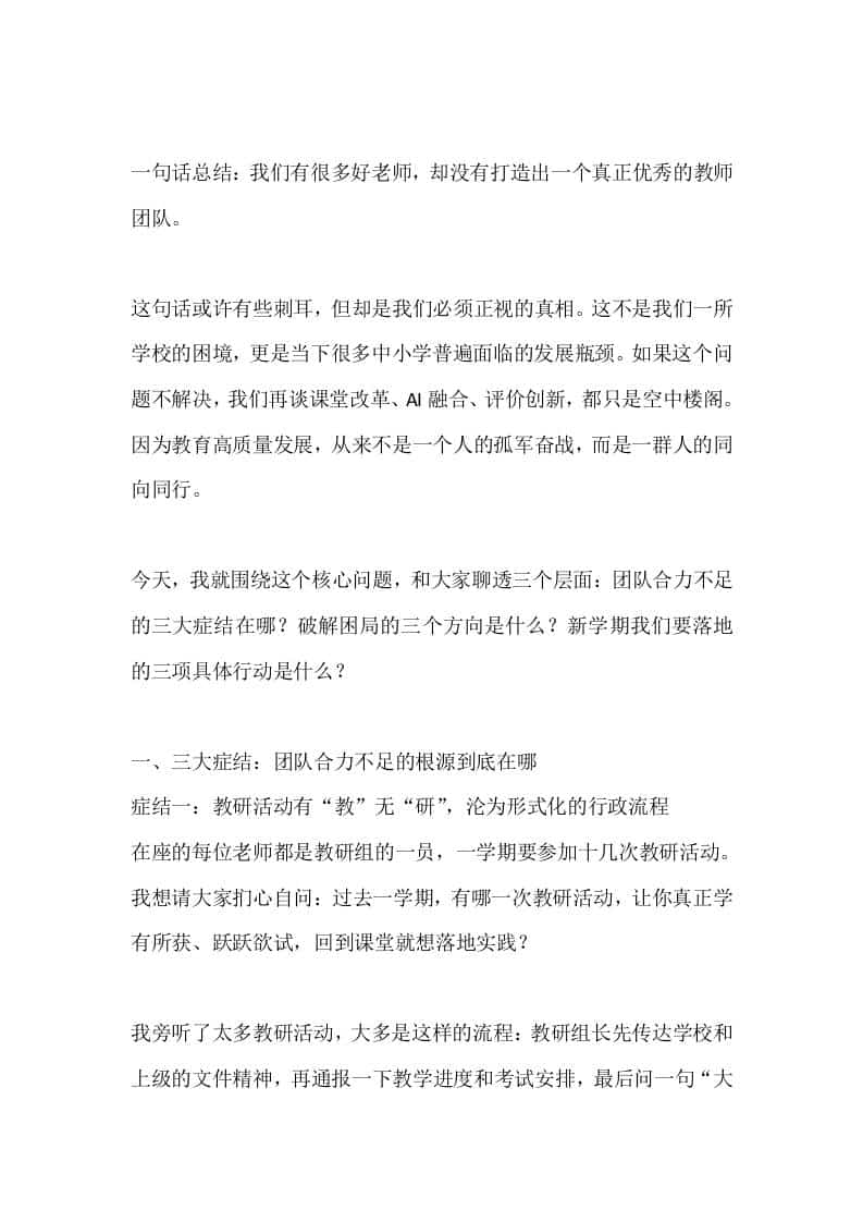 2026年春季开学全体教师大会校长讲话:破局单兵作战,以团队共生赢教育未来admin12天前发布关注私信0328 ——预览已结束,还剩12页未读——开通会员后可免费下载高清完整文档 2026年春季开学全体教师大会校长讲话:破局单兵作战,以团队共生赢教育未来此内容为付费资源,请付费后查看¥9.9黄金会员免费钻石会员免费暂时无法购买,请与站长联系您当前未登录!建议登陆后购买,可保存购买订单格式docx页数14 页大小21.19 KB付费资源© 版权声明文章版权归作者所有,未经允许请勿转载。THE END发言稿 喜欢就支持一下吧点赞8 分享QQ空间微博QQ好友海报分享复制链接收藏