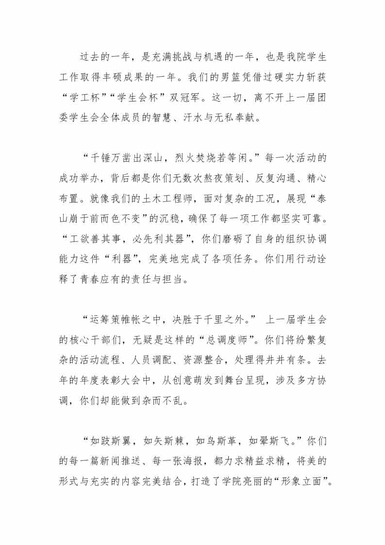 以专业之基,铸服务之魂,承寰宇之志——党委副书记团委学生会换届大会上的讲话admin12天前发布关注私信0328 ——预览已结束,还剩4页未读——开通会员后可免费下载高清完整文档 以专业之基,铸服务之魂,承寰宇之志——党委副书记团委学生会换届大会上的讲话此内容为付费资源,请付费后查看¥9.9黄金会员免费钻石会员免费暂时无法购买,请与站长联系您当前未登录!建议登陆后购买,可保存购买订单格式docx页数6 页大小15.60 KB付费资源© 版权声明文章版权归作者所有,未经允许请勿转载。THE END发言稿 喜欢就支持一下吧点赞8 分享QQ空间微博QQ好友海报分享复制链接收藏