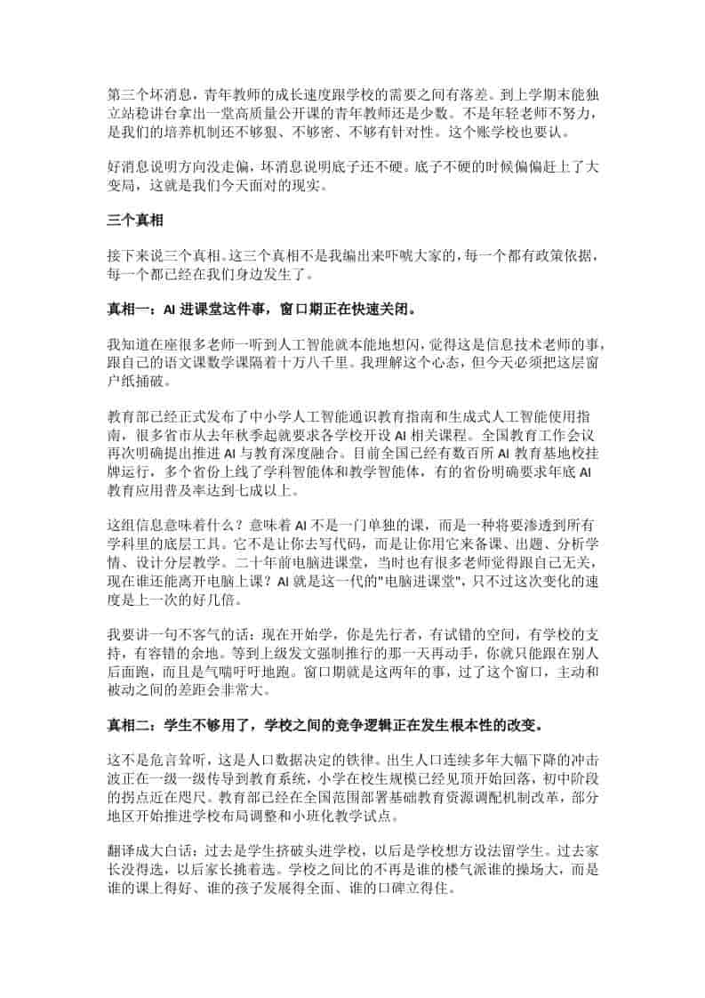 2026春季开学教职工大会校长讲话:1个判断、3个真相、3场硬仗!admin昨天发布关注私信0395 ——预览已结束,还剩4页未读——开通会员后可免费下载高清完整文档 2026春季开学教职工大会校长讲话:1个判断、3个真相、3场硬仗!此内容为付费资源,请付费后查看¥9.9黄金会员免费钻石会员免费暂时无法购买,请与站长联系您当前未登录!建议登陆后购买,可保存购买订单格式docx页数6 页大小19.21 KB付费资源© 版权声明文章版权归作者所有,未经允许请勿转载。THE END发言稿 喜欢就支持一下吧点赞5 分享QQ空间微博QQ好友海报分享复制链接收藏