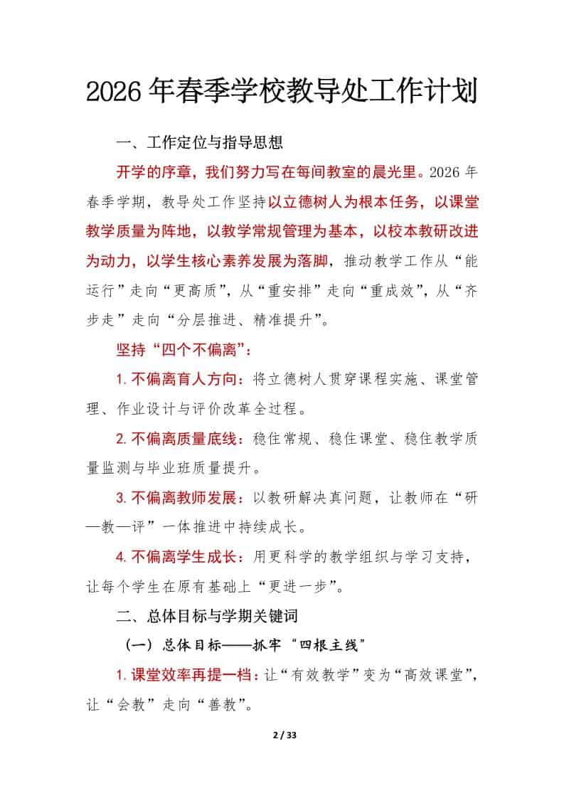 2026年春季学期学校教导处工作计划及安排表:一课一改见真章,一堂一效促提升admin昨天发布关注私信0319 ——预览已结束,还剩31页未读——开通会员后可免费下载高清完整文档 2026年春季学期学校教导处工作计划及安排表:一课一改见真章,一堂一效促提升此内容为付费资源,请付费后查看¥9.9黄金会员免费钻石会员免费暂时无法购买,请与站长联系您当前未登录!建议登陆后购买,可保存购买订单格式docx页数33 页大小781.75 KB付费资源© 版权声明文章版权归作者所有,未经允许请勿转载。THE END工作计划 喜欢就支持一下吧点赞9 分享QQ空间微博QQ好友海报分享复制链接收藏