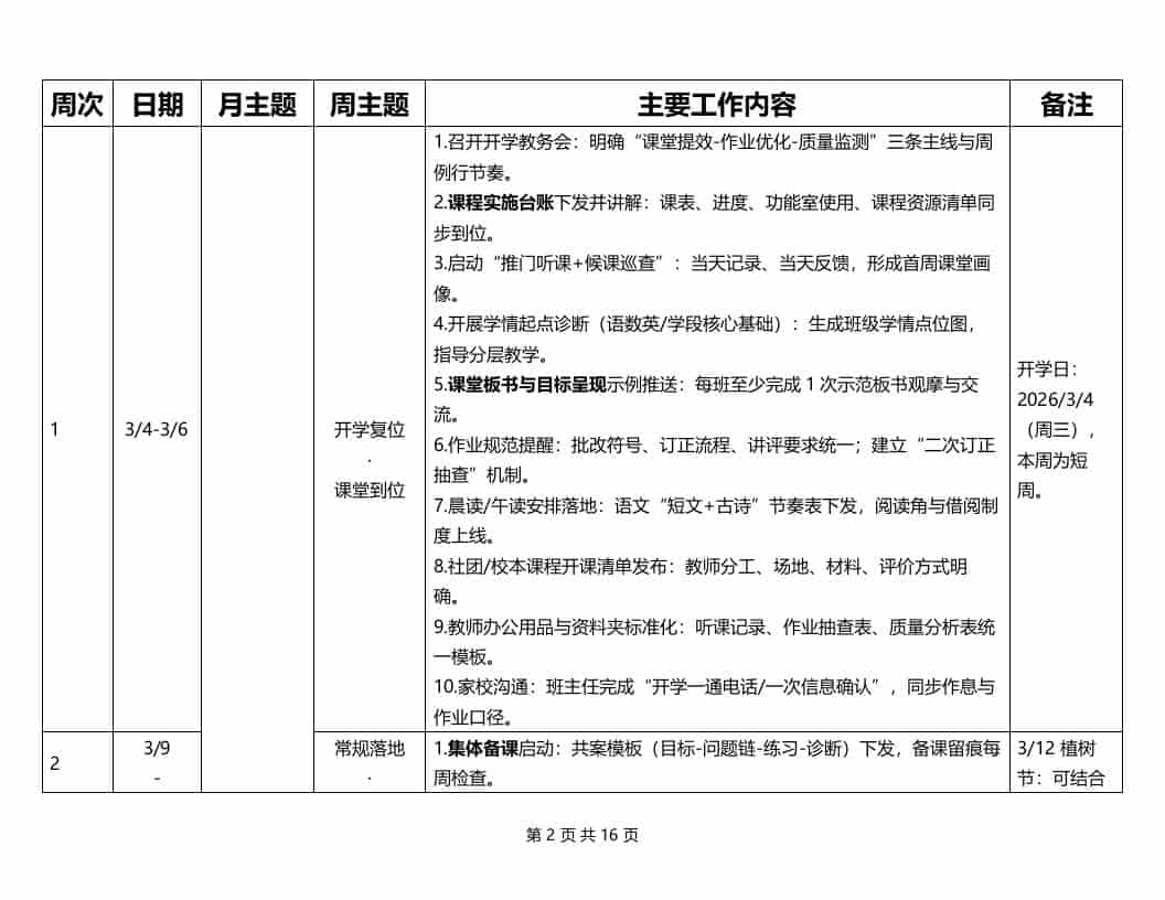 2026春季学期教导处工作安排表(横版)admin昨天发布关注私信03115 ——预览已结束,还剩14页未读——开通会员后可免费下载高清完整文档 2026春季学期教导处工作安排表(横版)此内容为付费资源,请付费后查看¥9.9黄金会员免费钻石会员免费暂时无法购买,请与站长联系您当前未登录!建议登陆后购买,可保存购买订单格式docx页数16 页大小71.45 KB付费资源© 版权声明文章版权归作者所有,未经允许请勿转载。THE END管理相关 喜欢就支持一下吧点赞15 分享QQ空间微博QQ好友海报分享复制链接收藏