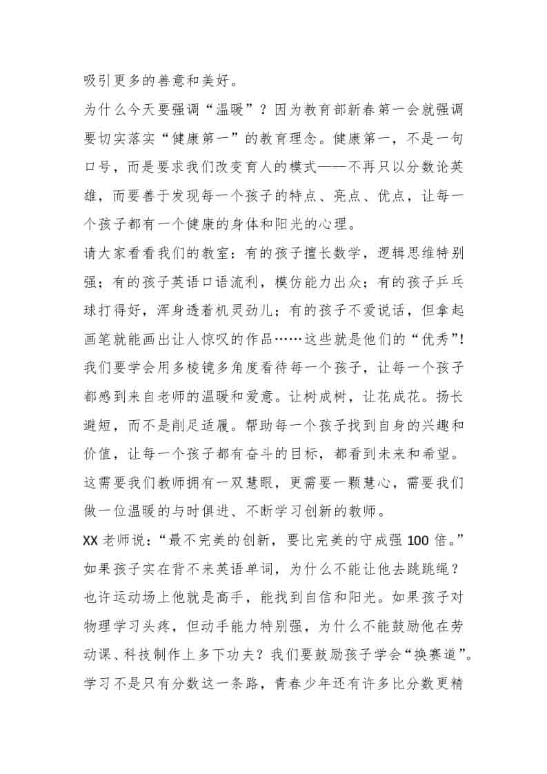 做一个温暖的与时俱进的教师——在春季开学全体教工会议上的讲话admin4天前发布关注私信0249 ——预览已结束,还剩1页未读——开通会员后可免费下载高清完整文档 做一个温暖的与时俱进的教师——在春季开学全体教工会议上的讲话此内容为付费资源,请付费后查看¥9.9黄金会员免费钻石会员免费暂时无法购买,请与站长联系您当前未登录!建议登陆后购买,可保存购买订单格式docx页数3 页大小13.23 KB付费资源© 版权声明文章版权归作者所有,未经允许请勿转载。THE END发言稿 喜欢就支持一下吧点赞9 分享QQ空间微博QQ好友海报分享复制链接收藏