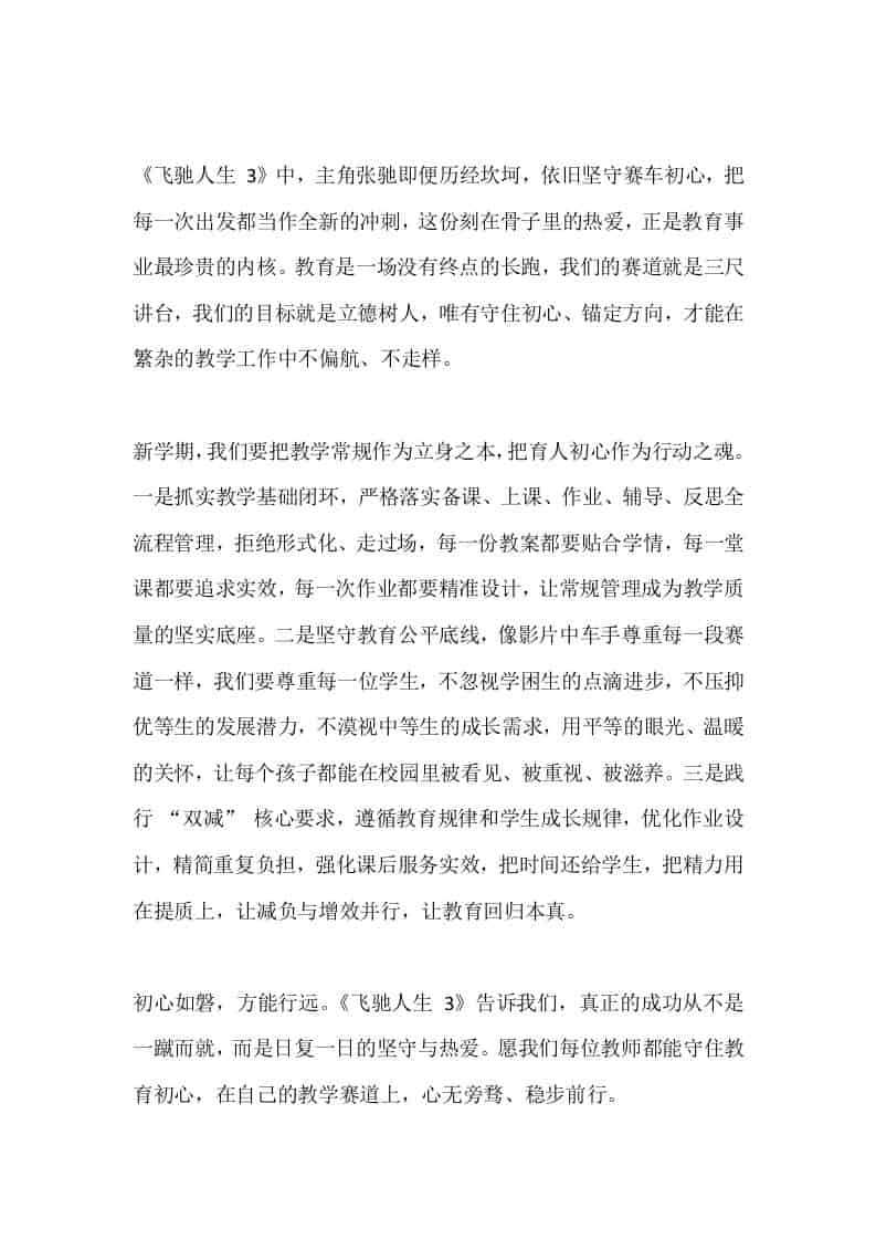 2026马年春季新学期,教学副校长全体教师会上引用电影《飞驰人生3》发言:驰而不息向新程,策马笃行育桃李admin前天发布关注私信0288 ——预览已结束,还剩5页未读——开通会员后可免费下载高清完整文档 2026马年春季新学期,教学副校长全体教师会上引用电影《飞驰人生3》发言:驰而不息向新程,策马笃行育桃李此内容为付费资源,请付费后查看¥9.9黄金会员免费钻石会员免费暂时无法购买,请与站长联系您当前未登录!建议登陆后购买,可保存购买订单格式docx页数7 页大小15.28 KB付费资源© 版权声明文章版权归作者所有,未经允许请勿转载。THE END发言稿 喜欢就支持一下吧点赞8 分享QQ空间微博QQ好友海报分享复制链接收藏