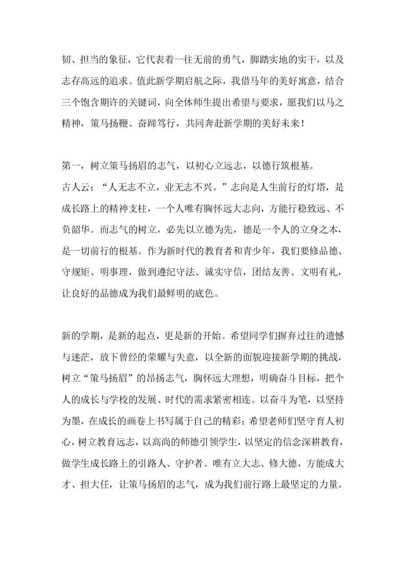 2026年春季开学典礼校长讲话:策马扬眉立远志,奋蹄笃行创未来admin昨天发布关注私信04213 ——预览已结束,还剩3页未读——开通会员后可免费下载高清完整文档 2026年春季开学典礼校长讲话:策马扬眉立远志,奋蹄笃行创未来此内容为付费资源,请付费后查看¥9.9黄金会员免费钻石会员免费暂时无法购买,请与站长联系您当前未登录!建议登陆后购买,可保存购买订单格式docx页数5 页大小14.40 KB付费资源© 版权声明文章版权归作者所有,未经允许请勿转载。THE END发言稿 喜欢就支持一下吧点赞13 分享QQ空间微博QQ好友海报分享复制链接收藏