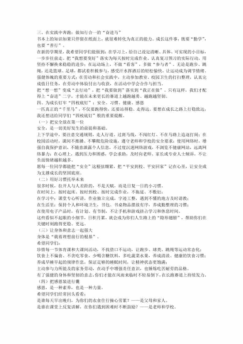 2026春季学期开学典礼,校长致辞:聚“三马”新力,奔赴新征程!admin昨天发布关注私信04313 ——预览已结束,还剩1页未读——开通会员后可免费下载高清完整文档 2026春季学期开学典礼,校长致辞:聚“三马”新力,奔赴新征程!此内容为付费资源,请付费后查看¥9.9黄金会员免费钻石会员免费暂时无法购买,请与站长联系您当前未登录!建议登陆后购买,可保存购买订单格式docx页数3 页大小15.99 KB付费资源© 版权声明文章版权归作者所有,未经允许请勿转载。THE END管理相关 喜欢就支持一下吧点赞13 分享QQ空间微博QQ好友海报分享复制链接收藏