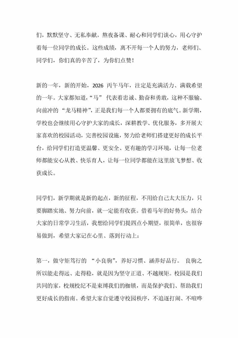 2026春季开学典礼,校长讲话:新学期,乘马年雄风追梦去admin昨天发布关注私信03315 ——预览已结束,还剩3页未读——开通会员后可免费下载高清完整文档 2026春季开学典礼,校长讲话:新学期,乘马年雄风追梦去此内容为付费资源,请付费后查看¥9.9黄金会员免费钻石会员免费暂时无法购买,请与站长联系您当前未登录!建议登陆后购买,可保存购买订单格式docx页数5 页大小14.28 KB付费资源© 版权声明文章版权归作者所有,未经允许请勿转载。THE END发言稿 喜欢就支持一下吧点赞15 分享QQ空间微博QQ好友海报分享复制链接收藏