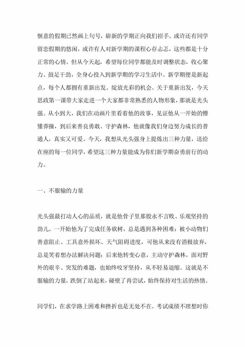 2026春季开学思政第一课,校长讲话:新学期,像光头强一样努力向前admin昨天发布关注私信03610 ——预览已结束,还剩3页未读——开通会员后可免费下载高清完整文档 2026春季开学思政第一课,校长讲话:新学期,像光头强一样努力向前此内容为付费资源,请付费后查看¥9.9黄金会员免费钻石会员免费暂时无法购买,请与站长联系您当前未登录!建议登陆后购买,可保存购买订单格式docx页数5 页大小14.17 KB付费资源© 版权声明文章版权归作者所有,未经允许请勿转载。THE END发言稿 喜欢就支持一下吧点赞10 分享QQ空间微博QQ好友海报分享复制链接收藏