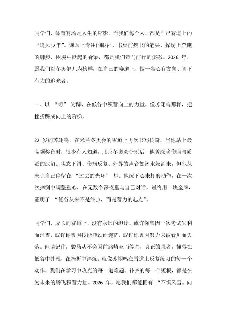 2026春季新学期开学典礼,校长讲话:米兰冬奥会的圣火已经熄灭,但赛场上的精神永远滚烫admin昨天发布关注私信0418 ——预览已结束,还剩3页未读——开通会员后可免费下载高清完整文档 2026春季新学期开学典礼,校长讲话:米兰冬奥会的圣火已经熄灭,但赛场上的精神永远滚烫此内容为付费资源,请付费后查看¥9.9黄金会员免费钻石会员免费暂时无法购买,请与站长联系您当前未登录!建议登陆后购买,可保存购买订单格式docx页数5 页大小14.42 KB付费资源© 版权声明文章版权归作者所有,未经允许请勿转载。THE END发言稿 喜欢就支持一下吧点赞8 分享QQ空间微博QQ好友海报分享复制链接收藏
