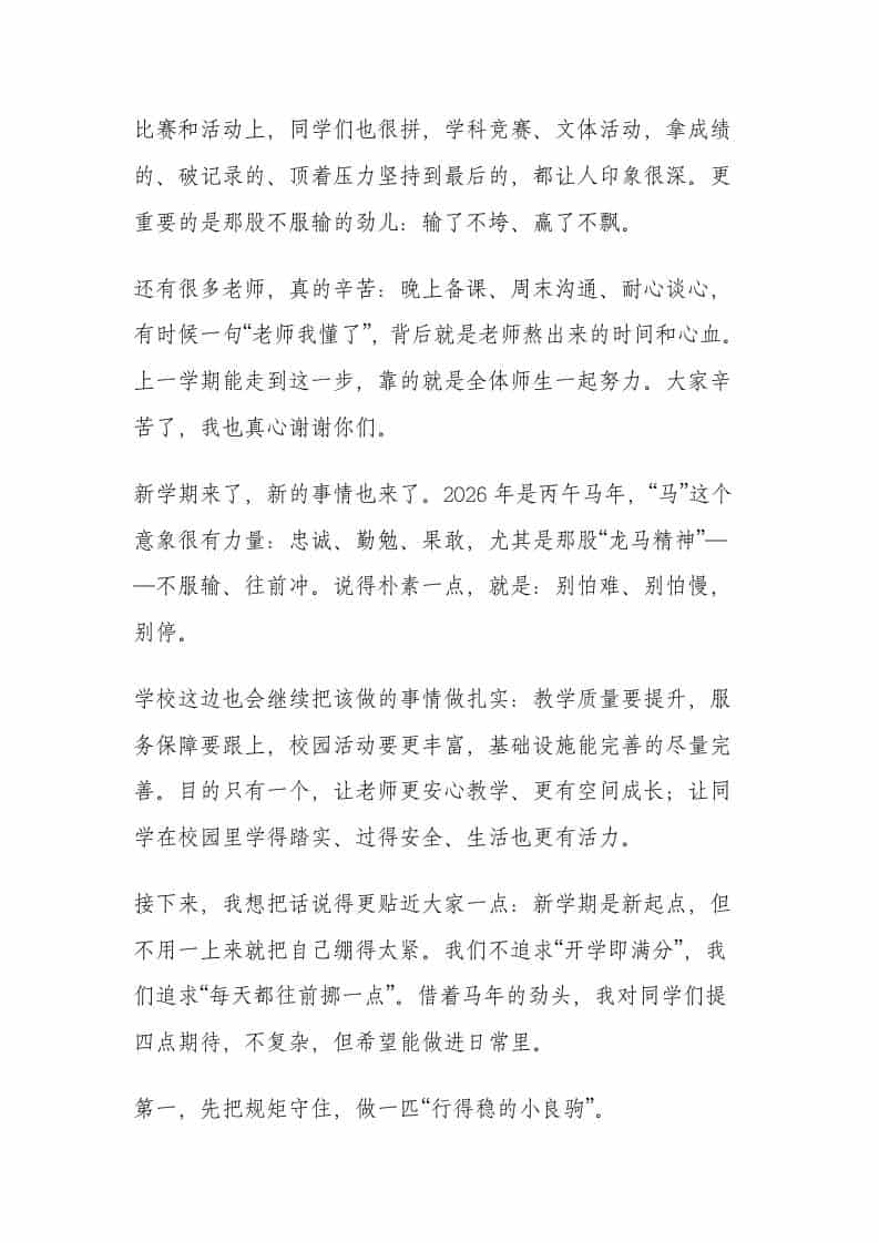 骏马奔腾启新程!2026春季开学典礼上,校长这段话振奋全场admin昨天发布关注私信03510 ——预览已结束,还剩4页未读——开通会员后可免费下载高清完整文档 骏马奔腾启新程!2026春季开学典礼上,校长这段话振奋全场此内容为付费资源,请付费后查看¥9.9黄金会员免费钻石会员免费暂时无法购买,请与站长联系您当前未登录!建议登陆后购买,可保存购买订单格式docx页数6 页大小14.72 KB付费资源© 版权声明文章版权归作者所有,未经允许请勿转载。THE END管理相关 喜欢就支持一下吧点赞10 分享QQ空间微博QQ好友海报分享复制链接收藏