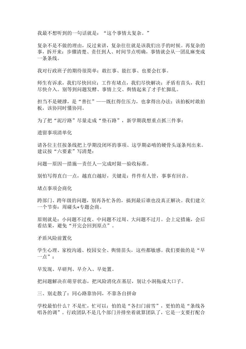 2026年春季学期行政班子会议,校长讲话:抓住这3点,全年工作稳了!admin20小时前发布关注私信05013 ——预览已结束,还剩2页未读——开通会员后可免费下载高清完整文档 2026年春季学期行政班子会议,校长讲话:抓住这3点,全年工作稳了!此内容为付费资源,请付费后查看¥9.9黄金会员免费钻石会员免费暂时无法购买,请与站长联系您当前未登录!建议登陆后购买,可保存购买订单格式docx页数4 页大小15.68 KB付费资源© 版权声明文章版权归作者所有,未经允许请勿转载。THE END发言稿 喜欢就支持一下吧点赞13 分享QQ空间微博QQ好友海报分享复制链接收藏