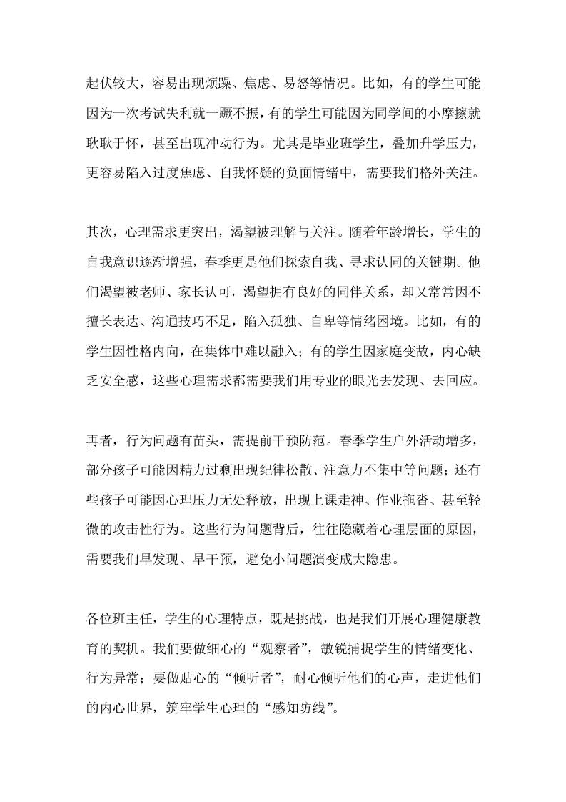 班主任心理健康教育专题培训会校长讲话:班主任作为班级管理的“第一责任人”,更是学生心理健康的“守护者”与“引路人”admin昨天发布关注私信0316 ——预览已结束,还剩5页未读——开通会员后可免费下载高清完整文档 班主任心理健康教育专题培训会校长讲话:班主任作为班级管理的“第一责任人”,更是学生心理健康的“守护者”与“引路人”此内容为付费资源,请付费后查看¥9.9黄金会员免费钻石会员免费暂时无法购买,请与站长联系您当前未登录!建议登陆后购买,可保存购买订单格式docx页数7 页大小15.81 KB付费资源© 版权声明文章版权归作者所有,未经允许请勿转载。THE END发言稿 喜欢就支持一下吧点赞6 分享QQ空间微博QQ好友海报分享复制链接收藏