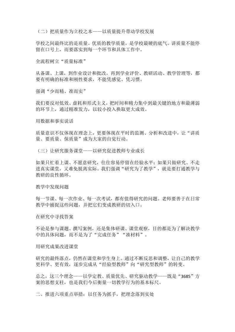 提升教学质量有方法!校长力推3685工作法:三大核心理念,六项关键举措,八个执行抓手,五类质量目标!admin昨天发布关注私信03010 ——预览已结束,还剩8页未读——开通会员后可免费下载高清完整文档 提升教学质量有方法!校长力推3685工作法:三大核心理念,六项关键举措,八个执行抓手,五类质量目标!此内容为付费资源,请付费后查看¥9.9黄金会员免费钻石会员免费暂时无法购买,请与站长联系您当前未登录!建议登陆后购买,可保存购买订单格式docx页数10 页大小23.52 KB付费资源© 版权声明文章版权归作者所有,未经允许请勿转载。THE END管理相关 喜欢就支持一下吧点赞10 分享QQ空间微博QQ好友海报分享复制链接收藏